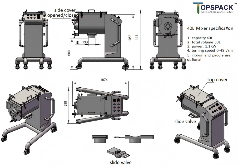 Tip: Always start the ribbon blender at a low speed and increase as needed. This helps avoid spills and ensures even mixing.