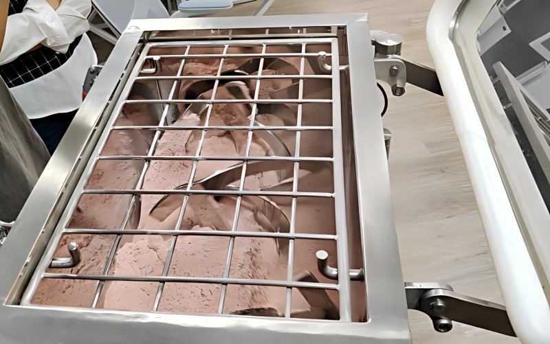 Safety interlock: When the lid is opened, the ribbon agitator immediately ceases operation, serving as a power cut-off mechanism. The machine stops instantly upon opening the lid.